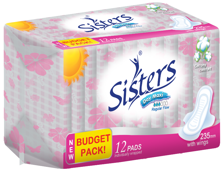 SISTERS DRY MAXI REG FLOW W/WINGS (PINK)